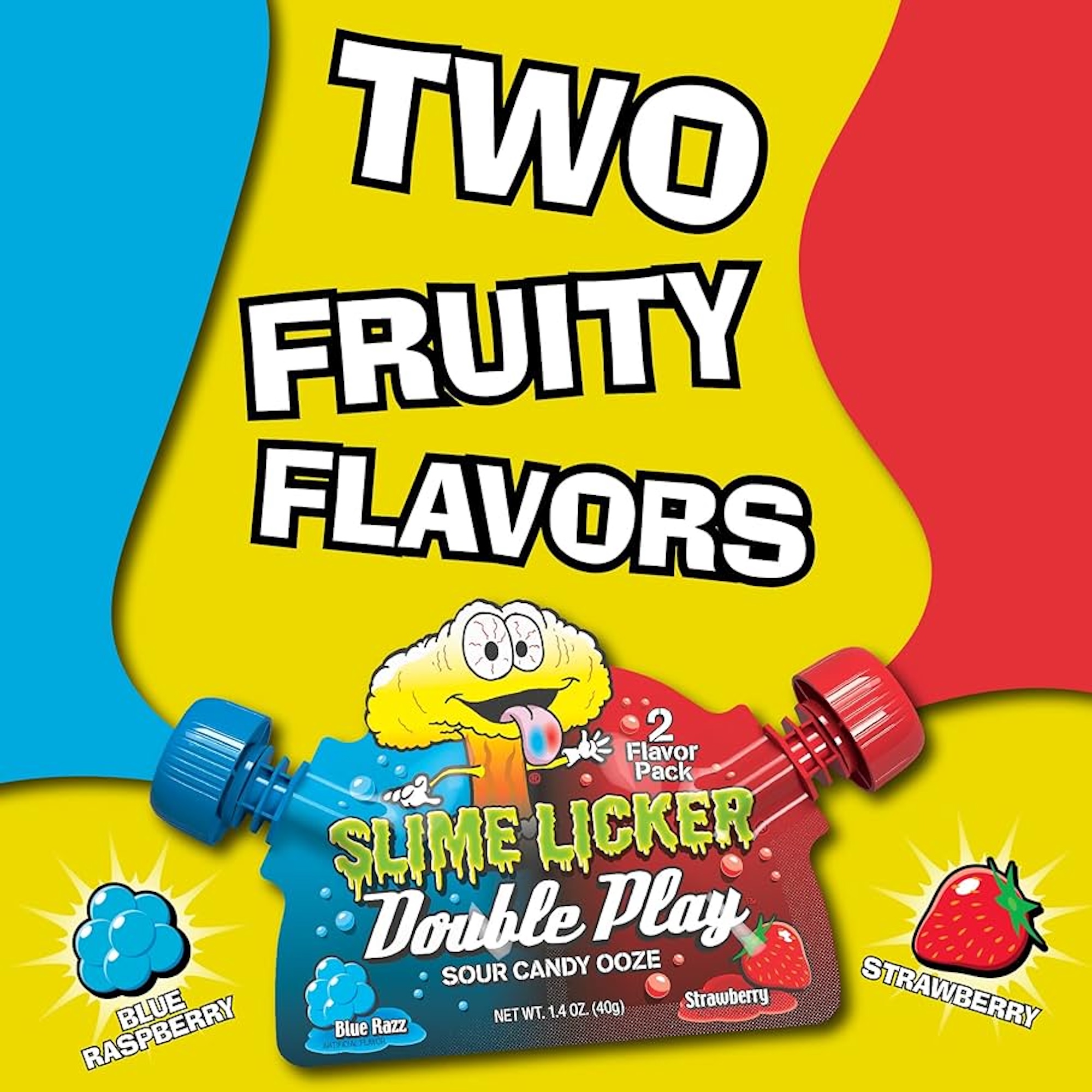 Prepare for a twin-pack tongue shock! Toxic Waste Slime Licker Double delivers twice the hazard for anyone who loves extreme sour candy. This unique pouch contains liquid candy ooze featuring two distinct chambers filled with Blue Razz and Strawberry flavors. You can enjoy each intense flavor separately, or fold the pouch to unleash double the sour power in a single slurp. It's the ultimate candy challenge perfect for parties, ensuring colorful smiles and the signature Toxic Waste initial sour jolt.